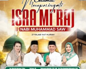 PURUK CAHU, jurnalisinfo.net – Bupati Murung Raya, Heriyus, bersama Wakil Bupati Murung Raya, Rahmanto Muhidin, menyampaikan ucapan selamat memperingati Isra Mi’raj Nabi Muhammad SAW 27
