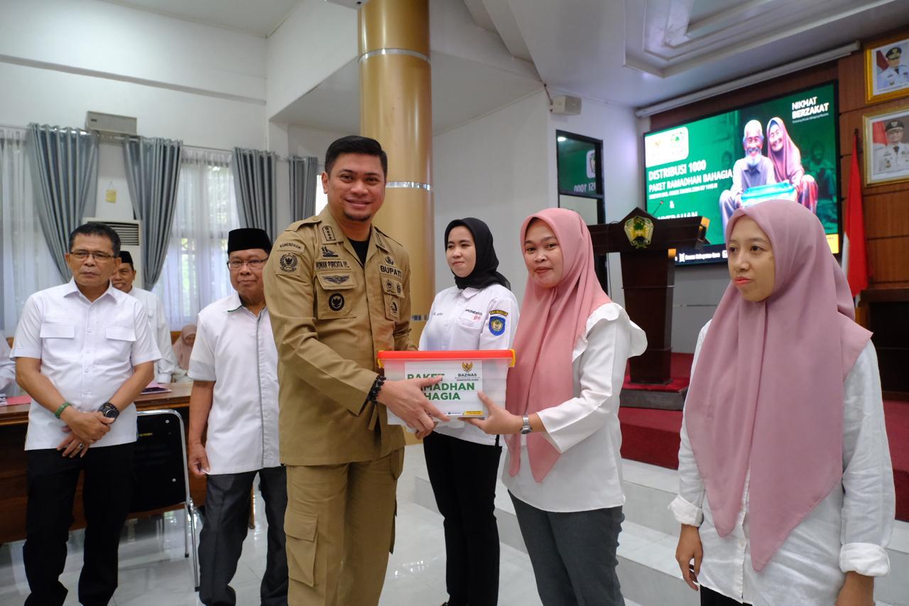 “Seluruh ASN di SKPD dan Kecamatan telah bersiap untuk menyerahkan zakat fitrahnya, dan kami laporkan pada hari ini telah disiapkan oleh Baznas 1000 paket dan diserahkan 150 paket secara simbolis kepada masyarakat,” terangnya.