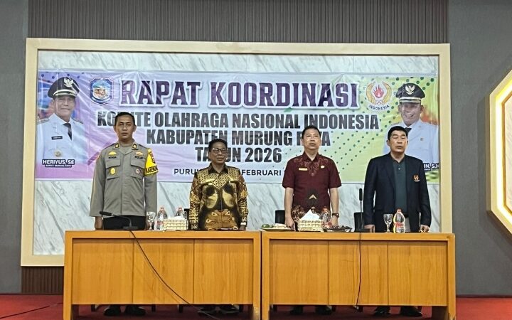 PURUK CAHU, jurnalisinfo.net – Komite Olahraga Nasional Indonesia (KONI) Kabupaten Murung Raya menggelar Rapat Koordinasi (Rakor) Tahun 2026, Jumat (13/2/2026), di Kantor Dewan Adat Dayak (DAD) Puruk Cahu. Kegiatan Rakor tersebut dipimpin oleh Bupati Murung Raya, Heriyus.