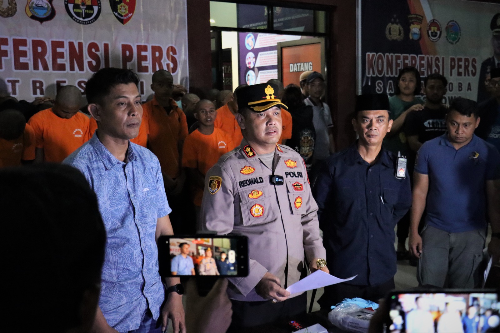 Adapun barang bukti yang disita berupa tiga anak panah, senjata tajam jenis badik masih dalam pencarian barang bukti, 19 henphone, pekaian pelaku serta beberapa kendaraan roda dua yang digunakan para pelaku saat melakukan aksi penyerangan.
