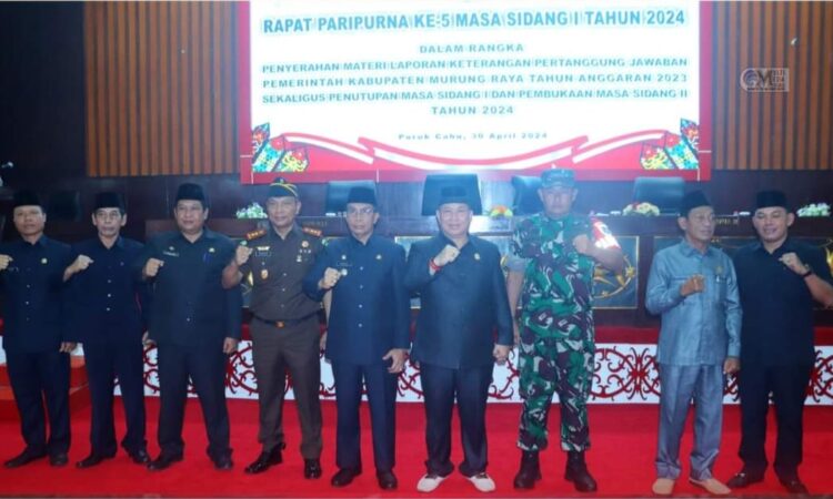 Rapat ini seiringan dengan penyerahan materi laporan keterangan pertanggung jawaban Pemerintah Kabupaten Murung Raya tahun Anggaran 2023 sekaligus penutupan masa sidang I dan pembukaan masa sidang II 2024.