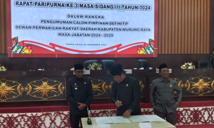 PURUK CAHU, JURNALISINFO.NET – Dewan Perwakilan Rakyat Daerah (DPRD) Kabupaten Murung Raya, Kalimantan Tengah menggelar rapat Paripurna ke 3 Masa Sidang III tahun 2024 dengan agenda pengumuman tiga nama calon pimpinan definitif DPRD periode 2024-2029.