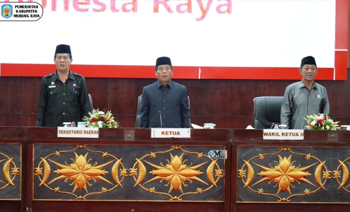 Rapat paripurna ini dipimpin Ketua DPRD Murung Raya, Rumiadi, S.E., S.H., M.H., didampingi Wakil Ketua II DPRD Murung Raya, Likon, S.H., serta dihadiri para anggota DPRD lainya.