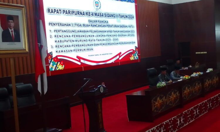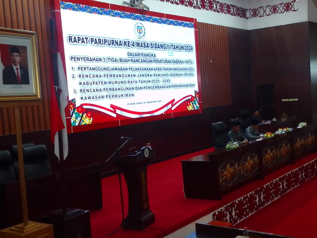 PURUK CAHU, jurnalisinfo.net – DPRD Kabupaten Murung Raya menggelar Rapat Paripurna Ke 4 Masa Sidang II Tahun 2024 dengan agenda penyerahan tiga buah rancangan Peraturan Daerah (Raperda) dari Pemerintah Daerah.