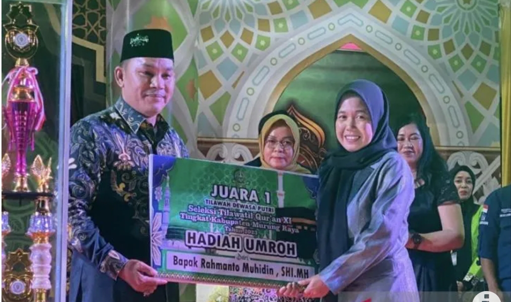 Murung Raya, Jurnalisinfo.net – Dua Anggota Dewan Perwakilan Rakyat Daerah (DPRD) Kabupaten Murung Raya, Kalimantan Tengah, Rahmanto Muhidin, S.HI, MH, dan Heriyus M. Yoseph SE, memberikan bonus umrah dalam gelaran Seleksi Tilawatil Quran (STQ) XI tingkat Kabupaten yang diselenggarakan di Kecamatan Tanah Siang Selatan.