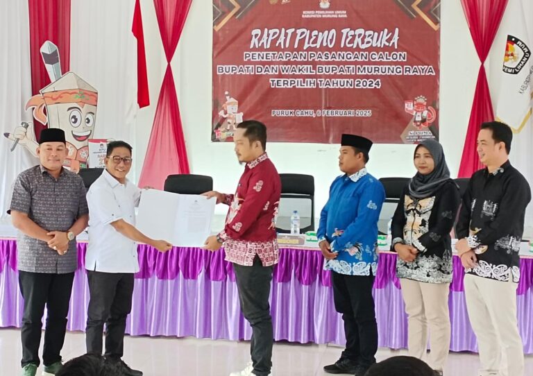 Penetapan tersebut di umumkan oleh Komisi Pemilihan umum melalui rapat pleno terbuka di aula demokrasi KPU Murung Raya, Kamis (6/02/2025).