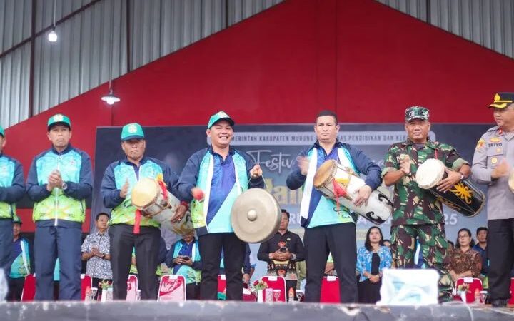 Sebagai tanda dibukanya kegiatan Festival Budaya Tira Tangka Balang, Bupati Murung Raya yang diwakili oleh Wakil Bupati Murung Raya, Rahmanto Muhidin memukul gong didampingi unsur Forkopimda, Sekretaris Daerah, Kepada Perangkat Daerah terkait berlangsung di panggung alun-alun jorih jerah Puruk Cahu, Kamis (24/4/2025).
