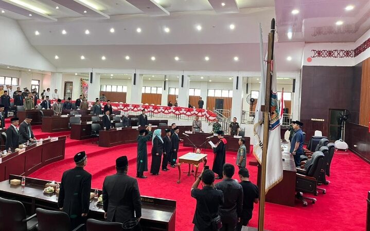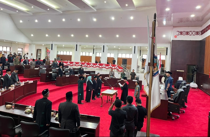 Ketiga Pimpinan DPRD Murung Raya yang di lantik dan diambil sumpah jabatanya oleh Pengadilan Negeri berlangsung di Gedung DPRD Murung Raya lantai ll, Senin (25/11/2024. Dihadiri sejumlah Anggota DPRD Murung Raya dan tamu undangan.