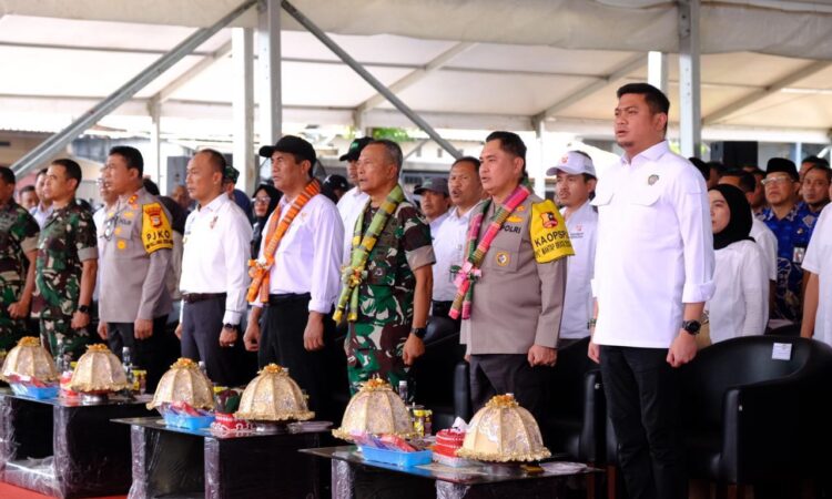 GOWA,JURNALIS INFO—-Bupati Gowa, Adnan Purichta Ichsan didampingi Wakil Bupati Gowa, Abdul Rauf Malaganni menerima Kunjungan Kerja Menteri Pertanian RI, Andi Amran Sulaiman bersama Kepala Badan Pertahanan Keamanan (Kabaharkam) Polri, Komjen Pol Moh. Fadil Imran dan Kepala Staf Umum TNI, Letjen TNI Richard T.H. Tampubolon di Kabupaten Gowa yang berlangsung di Lapangan Pemuda Kecamatan Pattallassang, Jum’at (11/10).