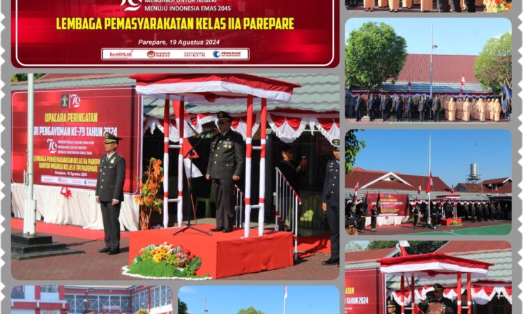 JURNALIS INFO —Parepare–19 Agustus 2024. Bertempat di Lapas IIA Parepare, telah dilaksanakan Upacara Peringatan Hari Pengayoman Ke-79 Tahun 2024. Selaku Inspektur Upacara Kepala Lapas IIA Parepare Totok Budiyanto, A.Md.IP., S.H, Perwira Upacara Ka Sie Administrasi Kamtib Bahri, S.Sos., M.H. dan Komandan Upacara Nasri Sirappa, S.E, M.H selaku Kaur Kepegawaian Dan Keuangan pada Lapas IIA Parepare. Senin, 19 Agustus 2024.