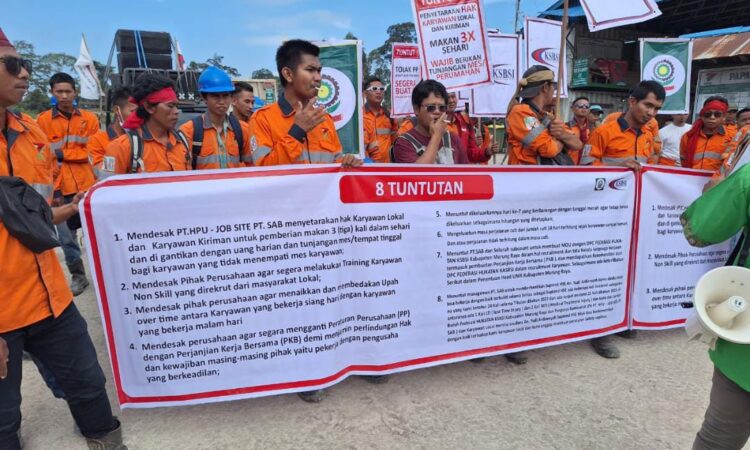 MURUNG RAYA, jurnalisinfo.net – Sabtu (29/7/2023), Ratusan karyawan lokal PT Harmoni Panca Utama (HPU) yang tergabung di Konfederasi Serikat Buruh Seluruh Indonesia ( KSBSI ) menggelar aksi damai, guna mendesak Management PT. HPU job site PT. Semesta Alam Barito (SAB) agar dipenuhi hak-hak mereka.