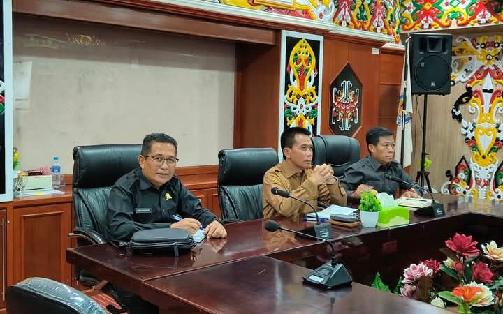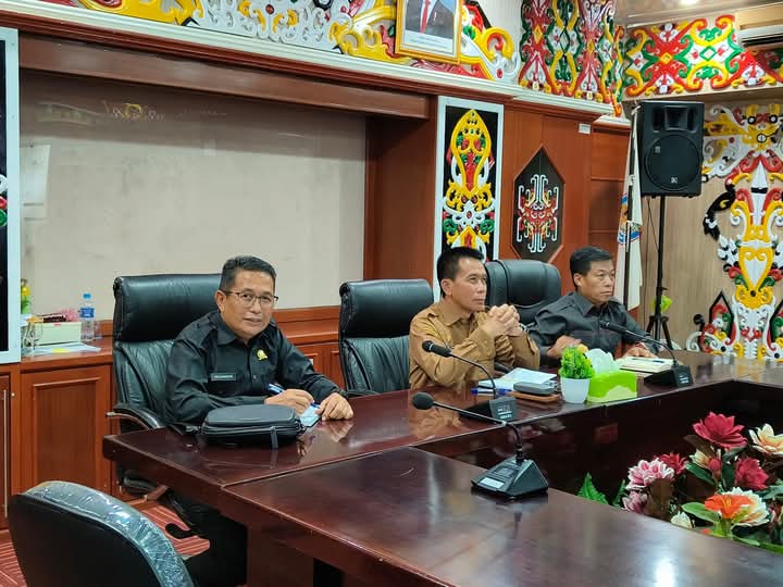 Turut hadir Ketua DPRD Kabupaten Murung Raya, Rumiadi, S.E.,S.H.,M.H, dan Ketua Komisi 1 DPRD Murung Raya, Rejikinnor, S.Sos, Sekwan DPRD, Andri Raya, S.STP.,M.Si, di aula kantor Bupati, Selasa (25/3/2025).