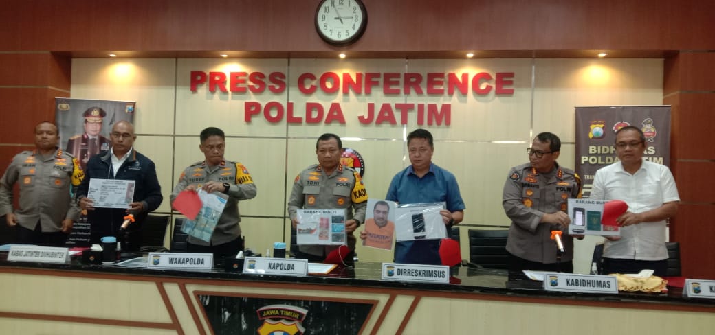 Press Release tersebut berlansung di gedung Humas baru, di hadiri Kapolda Jatim lrjen Pol. Dr. Toni Harmanto, MH., Wakapolda Jatim Kabidhumas, Dirreskrimsus, Kabidlabfor, Kabag. Jatinter Divhubinter, Kabidpropam dan jajarannya pada Rabu, 19/4/2023.