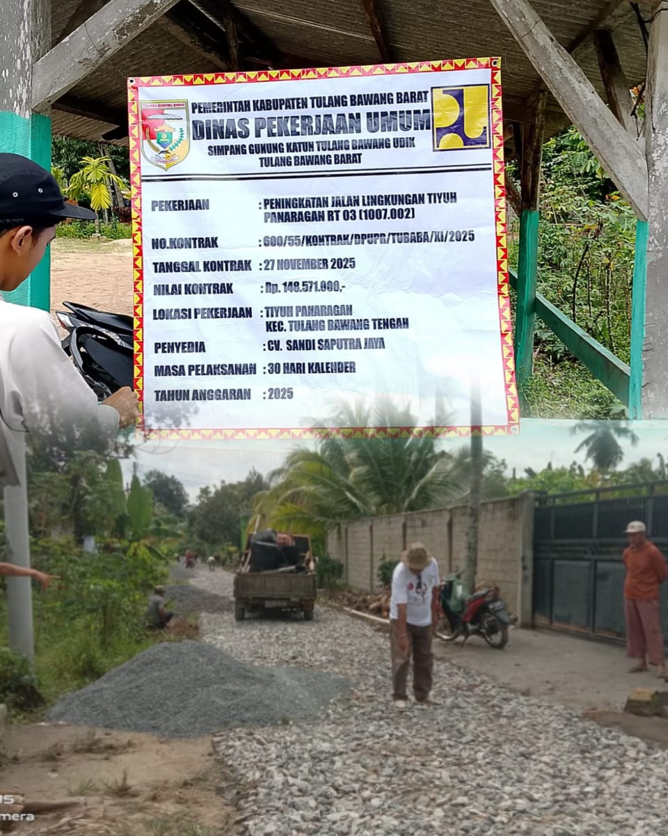 Pekerjaan Jalan Lingkungan tersebut di kerjakan oleh CV.Sandi Saputra Jaya dengan No Kontrak 600/55/Kontrak/DPUPR/Tubaba/XI/2025.