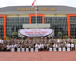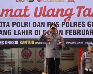 JURNALIS INFO, GRESIK – Kapolres Gresik AKBP Adhitya Panji Anom memimpin apel pagi anggota Polres Gresik yang bersamaan dengan anggota berulang tahun pada bulan Pebruari