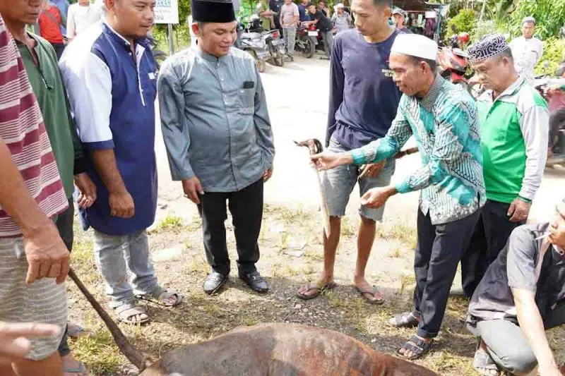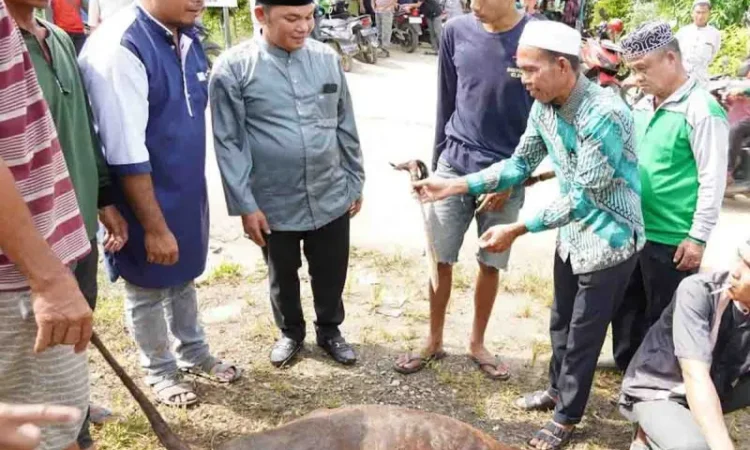 Dalam kesempatan tersebut, Wakil Bupati Murung Raya secara simbolis menyerahkan hewan kurban dari Pemerintah Daerah kepada pengurus langgar, sekaligus menyaksikan proses pemotongan hewan kurban yang akan dibagikan kepada masyarakat sekitar.